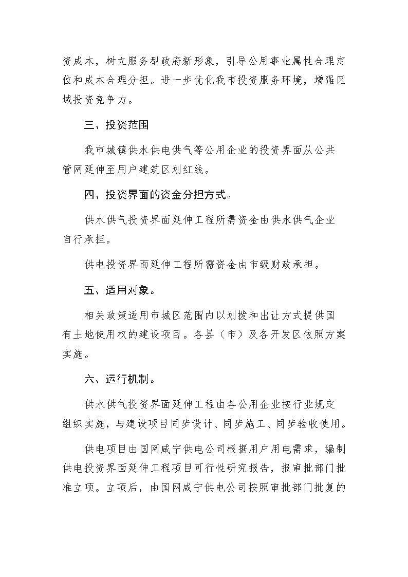 關(guān)于供水供電供氣企業(yè)延伸投資界面的實(shí)施方案